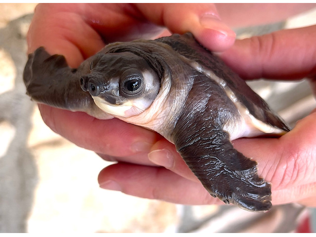 Juvenis de Carettochelys insculpta criados em cativeiro a partir de 2025 à venda.